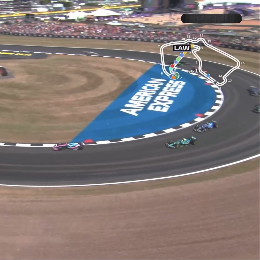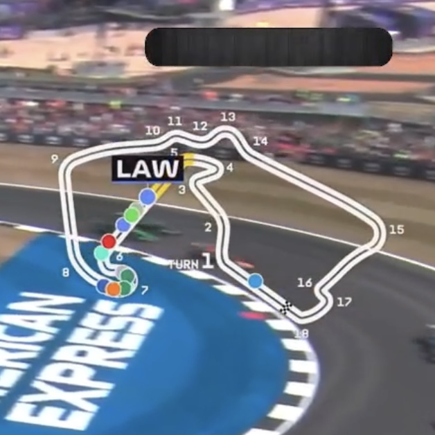 Стилизация отображения позиции пилотов на трассе под «карту» в видеоигре.