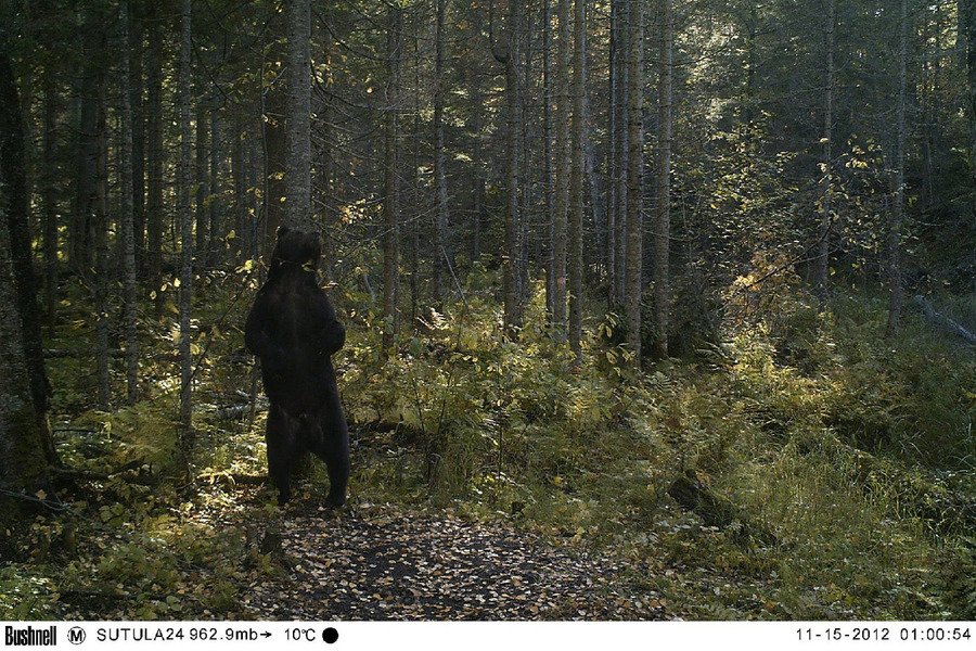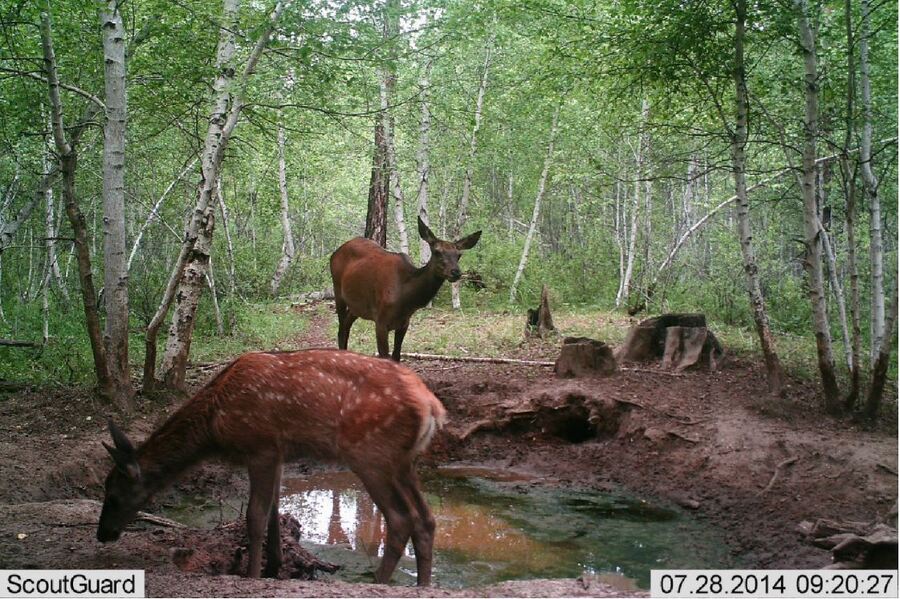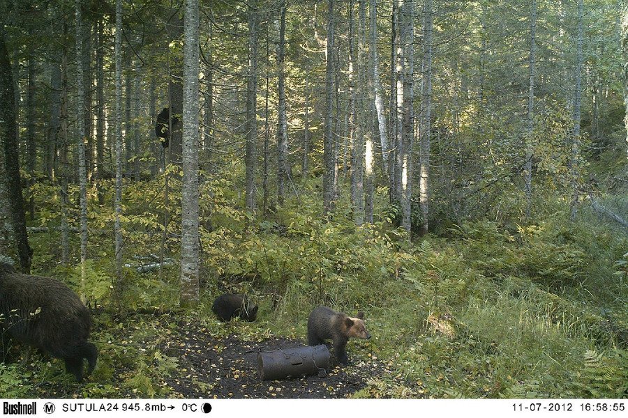 В Байкальском заповеднике фотоловушки используются как инструмент научного мониторинга, что и определяет их эстетику. Они фиксируют данные о жизни обитателей заповедника, таких как медведи, олени или рыси, в их естественной среде [4]. Получаемые кадры часто имеют строго функциональный характер: животное активирует датчик движения, и камера беспристрастно документирует момент его присутствия. Кадры могут быть размытыми, переэкспонированными или сделанными под странным углом — техническое совершенство приносится в жертву ценности информации. Здесь важен не художественный замысел, а факт регистрации, что делает этот взгляд инструментальным и лишенным человеческого отбора. Ученые получают сырые, неотфильтрованные данные о поведении видов, когда за ними никто не наблюдает.