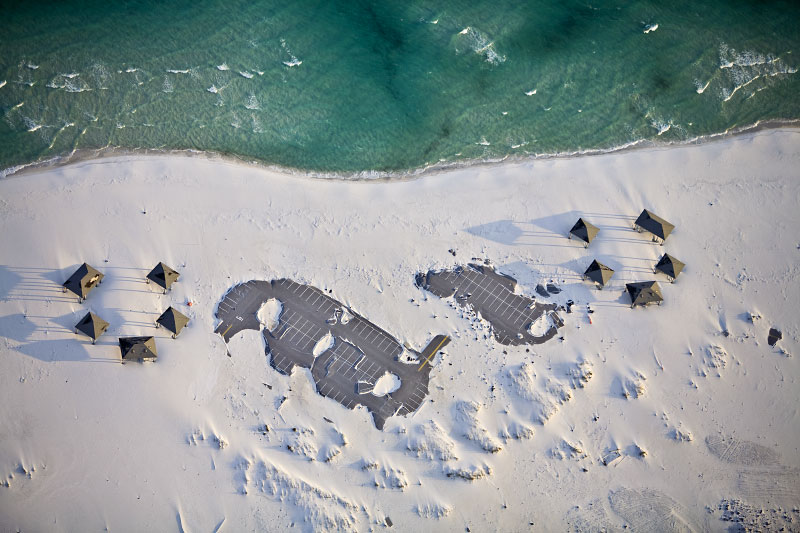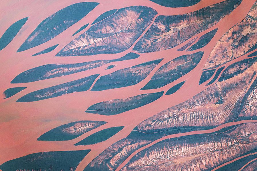 Знаковым проектом, предвосхитившим эту эстетику, стала работа Ян Артюс-Бертрана «Earth from above». Его снимки, сделанные с вертолета, демонстрируют планету как единый сложный организм [11]. Фотограф запечатлевал природные и антропогенные ландшафты, подчеркивая их геометрию и цветовые контрасты. Этот масштабный взгляд позволяет увидеть хрупкость и красоту Земли, предлагая зрителю занять позицию внешнего наблюдателя. Каждый кадр представляет собой тщательно выстроенную композицию, где естественные формы и созданные человеком структуры образуют сложные визуальные паттерны. Артюс-Бертран часто выбирал моменты особого освещения — рассвет или закат, — что придает его работам почти мистическое звучание. Его фотографии демонстрируют, как изменение перспективы раскрывает симметрию и порядок там, где с земли мы видим лишь хаос. Проект стал визуальным манифестом, показывающим, как изменение ракурса раскрывает новые смыслы в привычных видах, превращая документальную съемку в философское высказывание о месте человека в глобальной экосистеме.