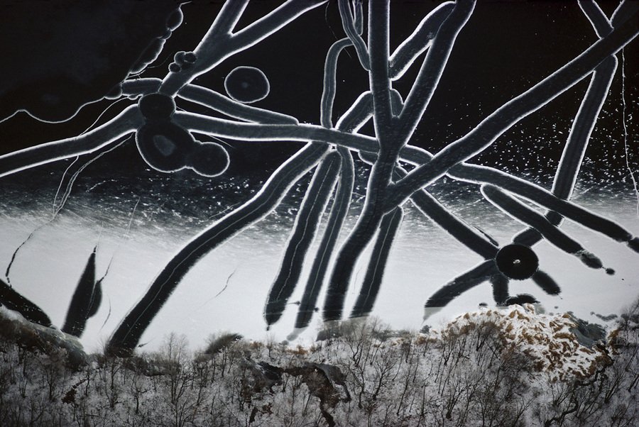 Исследование рассматривает различные стороны фотографии, например, длинная выдержка задаёт философский контекст, показывая, как фотография фиксирует не мгновение, а саму протяжённость времени. Фотоловушки устраняют не только человеческое восприятие, но и самого фотографа, делегируя акт съёмки объекту или случайности. Макрофотография при помощи микроскопов и сильного увеличения переносит фокус в пространственную плоскость, открывая визуальный доступ к мирам за пределами возможностей человеческого глаза. Аэрофотография, созданная при помощи дронов или вертолетов, устраняя земную точку обзора, превращает ландшафты в абстрактные паттерны, помогает человеку взглянуть на мир с высоты, куда он не может добраться без специального оборудования. Наиболее радикальным воплощением темы становится космическая фотография, где человеческое присутствие исключено полностью, а Земля и ее просторы предстают объектом в масштабах Вселенной.