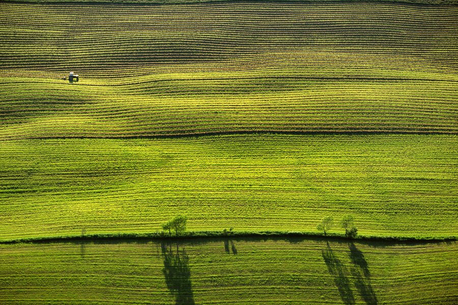 Алекс Маклин, будучи не только фотографом, но и пилотом, уже много лет является мастером аэрофотосъемки, создавая потрясающе красивые снимки, которые по-настоящему замечательны [13]. На его фотографиях городские пейзажи, сельскохозяйственные поля и природные объекты превращаются в замысловатые абстрактные композиции. Маклин находит красоту в самых неожиданных местах, от узоров на полях до геометрии городских строений. Что отличает его работы, так это уникальный ракурс, часто он снимает под таким углом, который создает динамичные перспективы и раскрывает текстуры поверхностей.