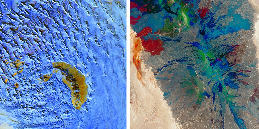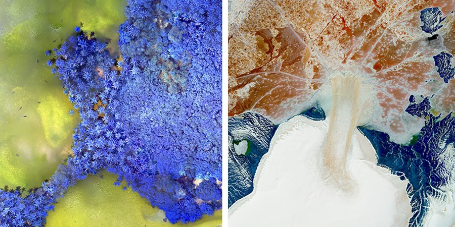 Серия «Earth Art» из коллекции NASA специально акцентирует внимание на эстетических аспектах — здесь реки напоминают японскую каллиграфию, песчаные моря в Сахаре выглядят как абстрактная живопись, а фитопланктон у побережья создает импрессионистские полотна. Такие изображения подчеркивают, что даже при участии человека-оператора взгляд из космоса остается по сути не-человеческим, ибо сама перспектива и масштаб наблюдения недостижимы в земных условиях. Эти фотографии становятся мостом между научной объективностью и художественной чувствительностью, расширяя наше представление о красоте и хрупкости родной планеты.