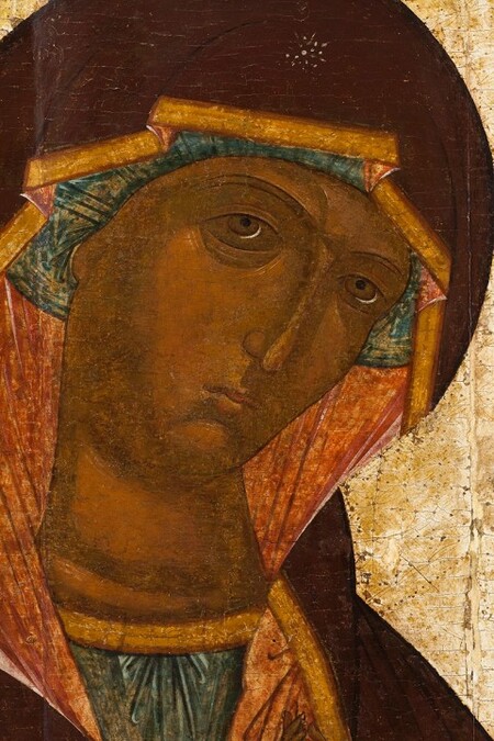 Богоматерь Одигитрия (Грузинская) Конец 15 века. Новгород Фрагменты