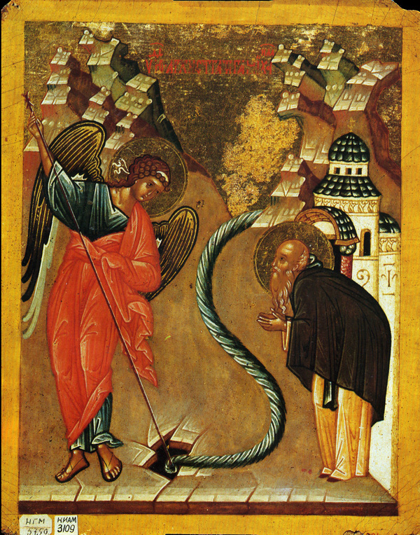 На этой иконе сандалия превратилась в отпечаток ступни на скале.