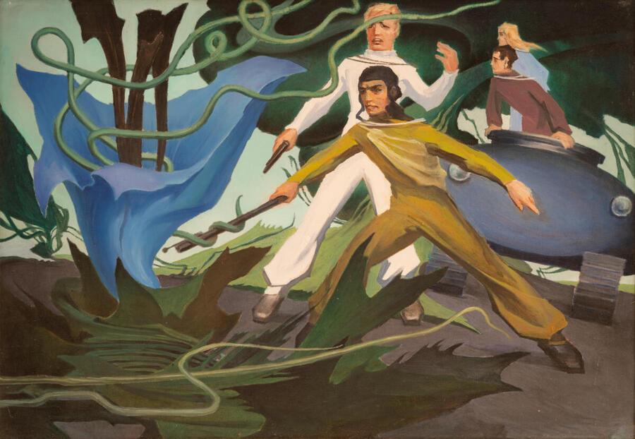 Обе картины визуально и сюжетно напоминают эпизод из фильма «Планета бурь» (1961, реж. Павел Клушанцев). Там один из членов команды оказывается захвачен инопланетным растением с щупальцами, и другие бросаются его спасать. В футуристической фантастике инопланетная флора часто становится не просто экзотическим фоном, а самостоятельным действующим персонажем, воплощающим идею чуждой логики природы.