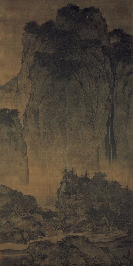 1. Го Си. Ранняя весна. 1072 г. Тушь и светлые краски на шёлке. 2. Фан Куань. Путники среди гор и потоков. Ок. 1000. Тушь на шёлке. Музей императорского дворца, Тайбэй