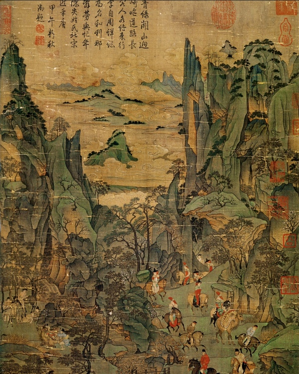 Ли Чжаодао (приписывается). Путешествие императора Минхуана в Шу. Свиток на шёлке. VII–VIII века. Музей императорского дворца, Тайбэй