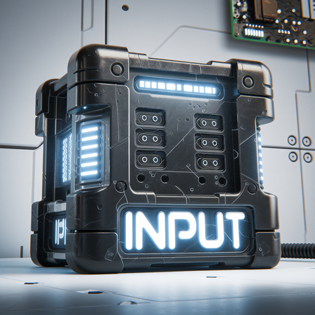 promt: Create a brand product for cyberpunk center with logo «INPUT» on the white background В генерации был выбран стиль «3D»