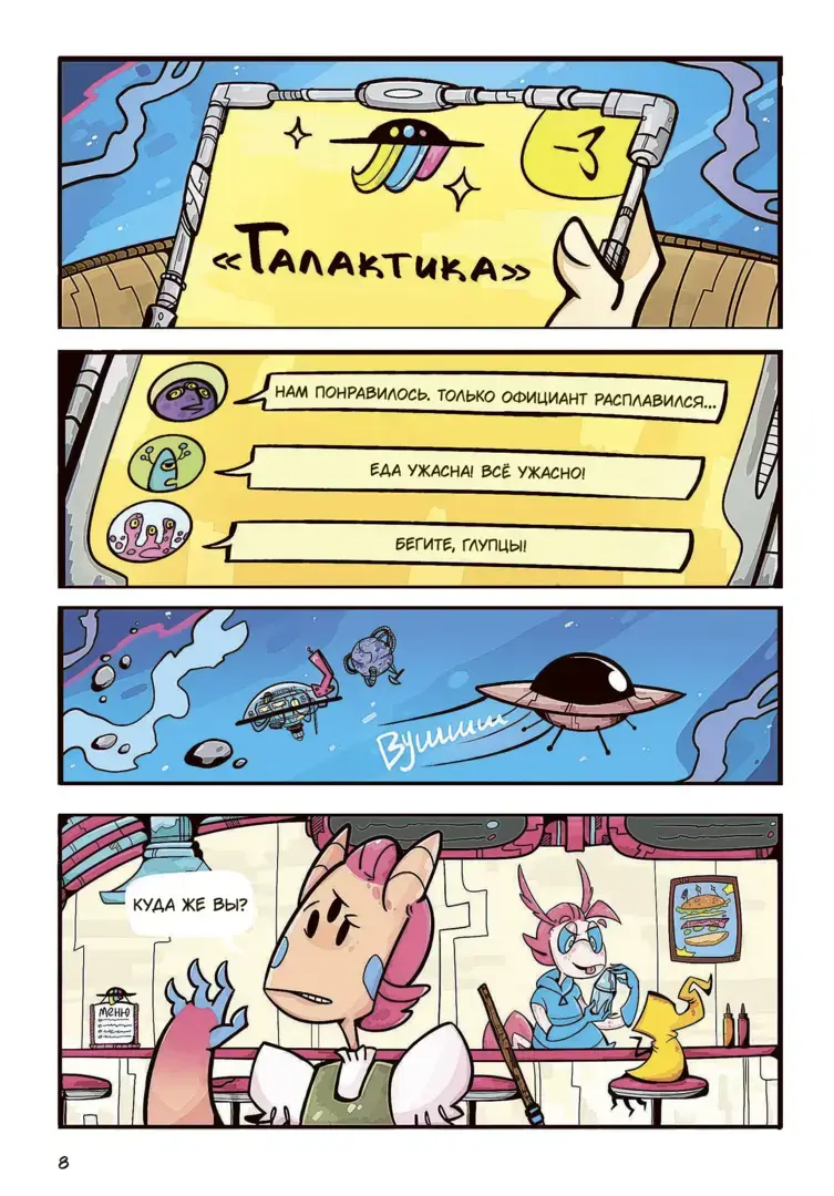 «Звездное кафе Галактика» (Алиса Чалис, Clash): https://www.reddit.com/media?url=https%3A%2F%2Fpreview.redd.it%2Fsome-of-the-art-from-my-webcomic-v0-xo6lsk6ld9yf1.jpg%3Fwidth%3D1080%26crop%3Dsmart%26auto%3Dwebp%26s%3Dd936031a07496110f64e72ce375dd136395dcd0a (Дата обращения 15.11.2025)