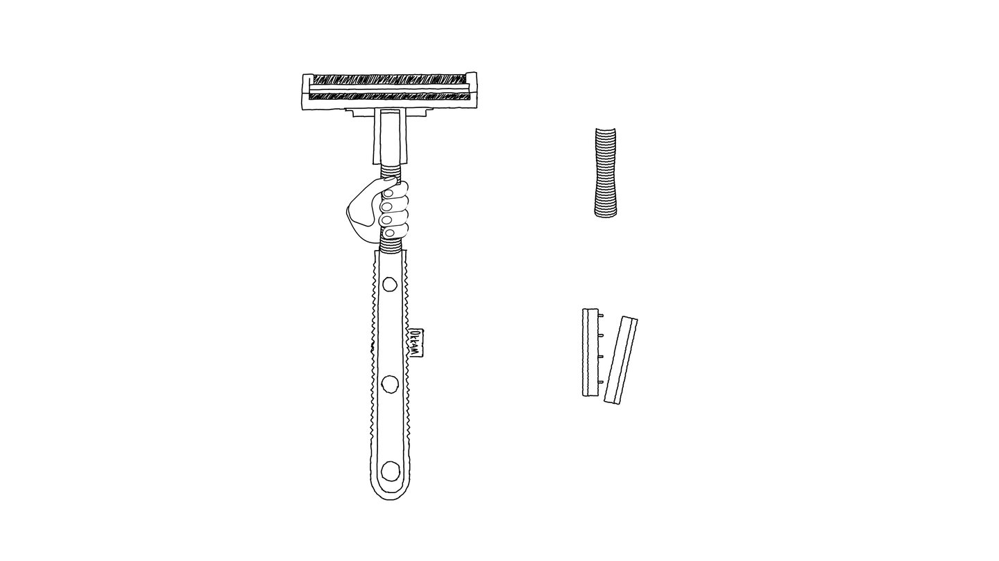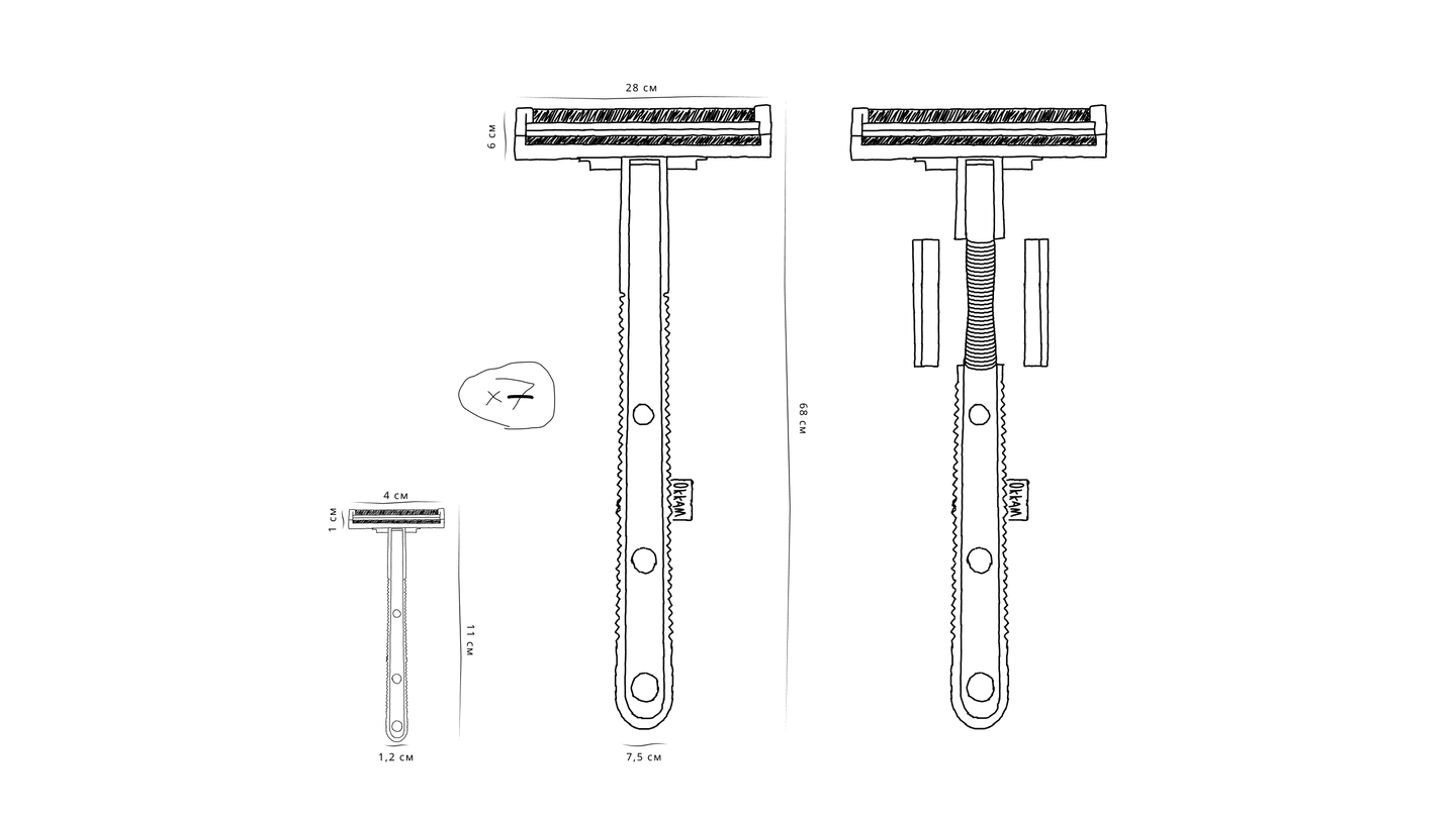 Идея продукта родилась после ироничного сравнения бритвы и инструментов для уборки. Они же работают одинаково! Убирают грязь с поверхности. Поэтому я решил сделать стеклоочиститель, мимикрирующий под бритву. Это огромный прикол — приходишь в гости, а там БОЛЬШУЩАЯ бритва. То что нужно для молодой аудитории бренда. Колко и функционально. 一鸣惊人