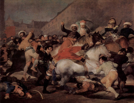 справа: Франсиско Гойя — «Восстание 2 мая 1808 года в Мадриде» — 1814 — 268 × 347 см Франсиско Гойя — «Третье мая 1808 года» — 1814 — 375 × 266 см