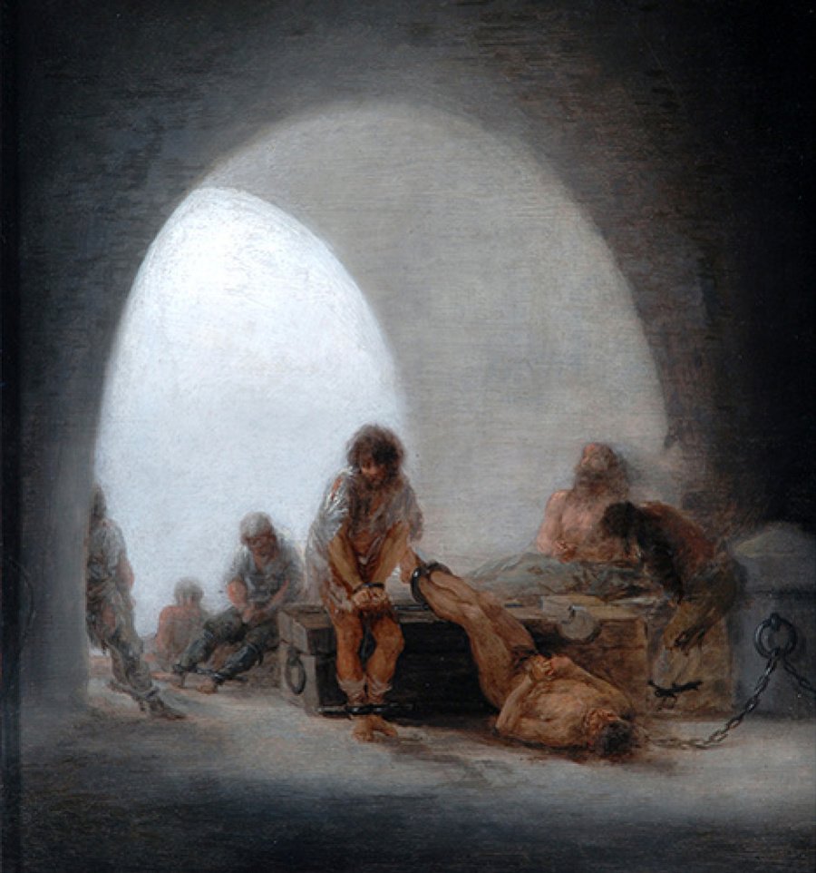Франсиско Гойя — «Сумасшедший дом» — 1812–1819 — 46 × 73 см Франсиско Гойя — «Интерьер тюрьмы» — 1793–1794 — 42,9 × 31.7 см