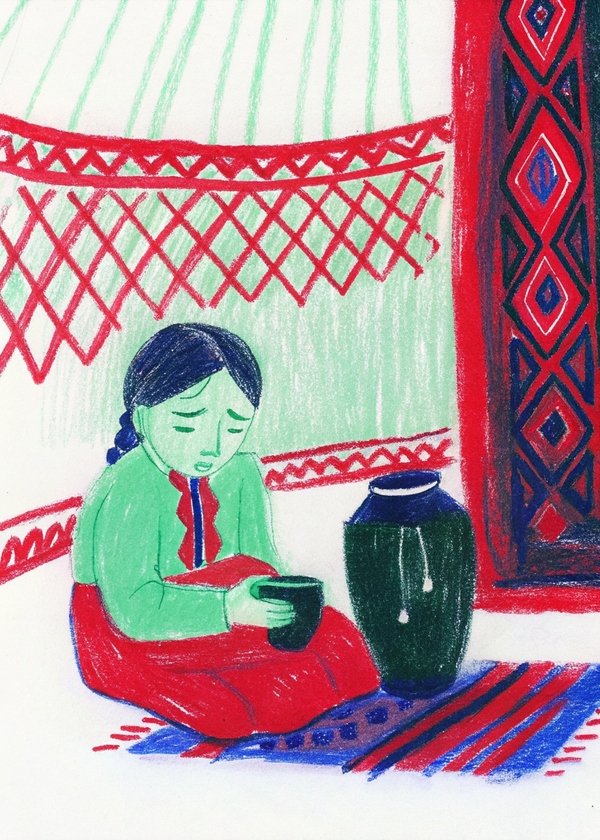 Когда кувшин наполнился до краев, Айгуль с трудом поднялась, подошла к войлочной стене юрты и вылила его содержимое на землю наружу. И в ту же секунду с небес, где не было ни единой тучи, хлынул ливень. Но это были не капли воды, а такие же соленые слезы неба. Дождь лился не переставая, заливая долину всю ночь.