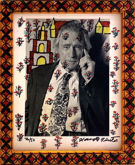 Original Drawing on Photo of Howard Finster, signed 46/50, framed in original woodburn molding