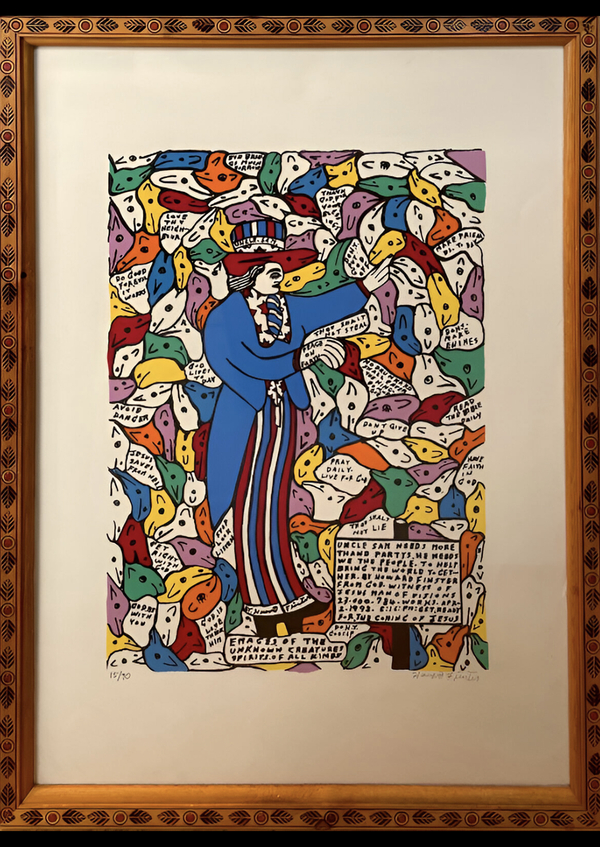 Howard Finster, God Lives Published circa, 1990-2000. (Signed limited-edition screenprint on rag paper)
