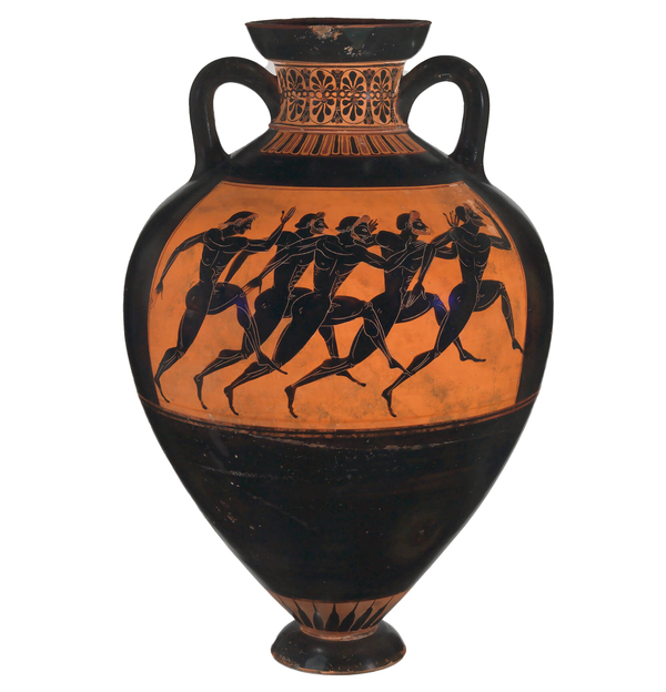 Изображение соревнующихся бегунов на панафинейской амфоре. 530 г. до н. э.