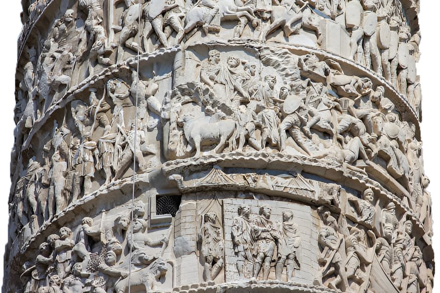 Этот принцип имеет предшествия в римском рельефе, например на колонне траяна. Спиральный фриз организован как непрерывная последовательность сцен.