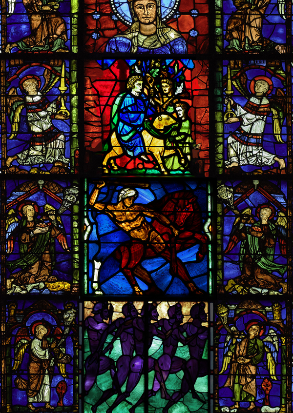Витражи в ланцетных окнах под южной розой Шартрского собора