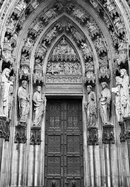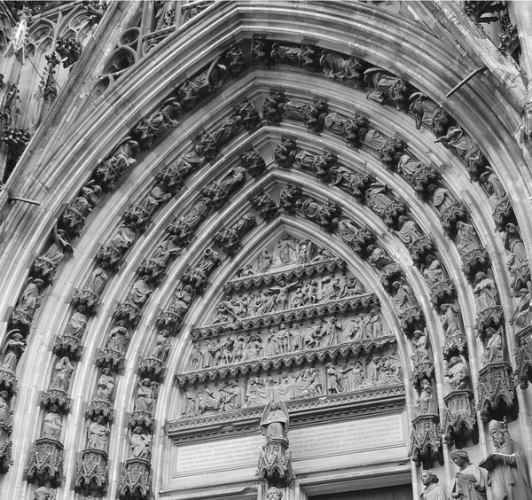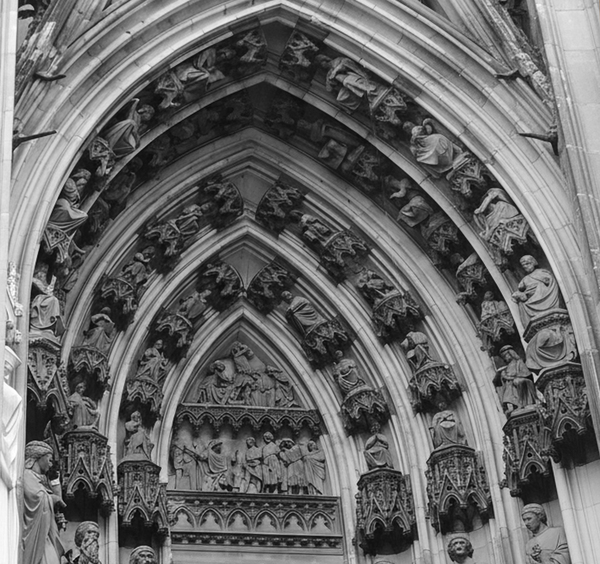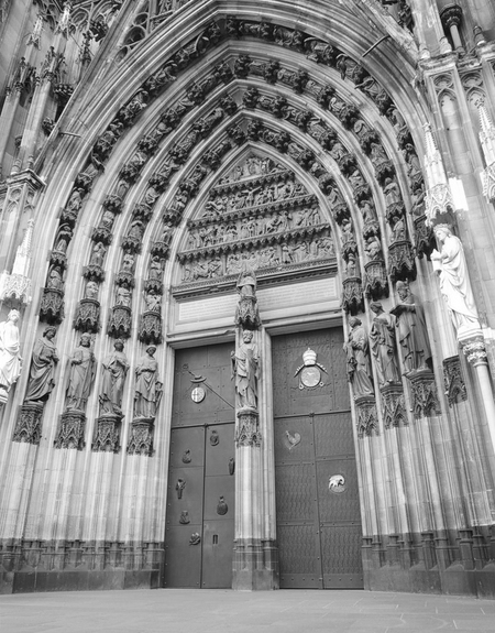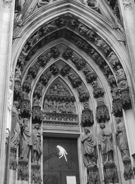 Западный фасад Кельнского собора включает в себя три портала: Центральный, портал Святого Петра и портал Трёх Королей.