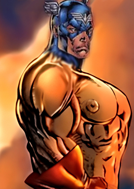 Любовь Роба Лайфелда к созданию несколько рядов карманов и поясов, а также квадратные челюсти и гора мышц были отображены в пародийном изображении