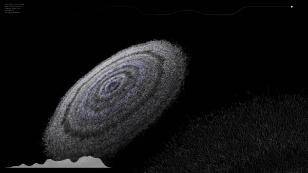 В этой работе центр внимания смещается с человека на демонстрацию мультивидовой структуры, которая хоть и реагирует на движения человека, позволяя стать ему частью системы, но продолжает жить и без его участия.