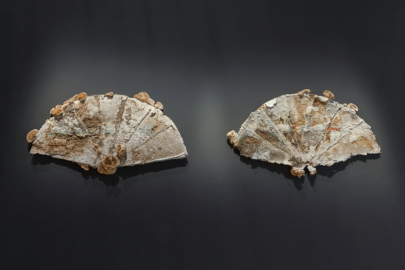 Скульптуры созданы из гриба Trametes versicolor. Этот вид мицелия движется, находя уже мертвые объекты и разлагая их.