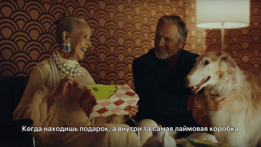 Кульминацией становится момент распаковки подарков с фирменными лаймовыми коробками. Здесь бренд входит в каждую историю и фиксируется как «тот самый» удачный подарок.