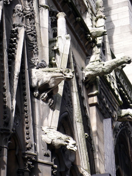Создавая шедевры архитектурных сооружений, строители позаботились и об их сохранности, установив водостоки дождевой воды с крыш. Водостоки скульптурно оформляли в виде гротескных персонажей. Сильно вынесенные перпендикулярно стене гаргульи являются характерным элементом средневековых соборов. *Изображение: горгульи и химеры собора Парижской Богоматери (Нотр-Дам-де-Пари) / XIII в. / Париж, Франция