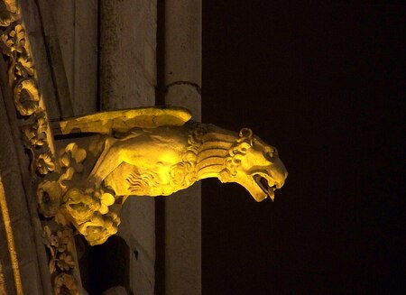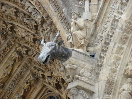 Гаргульи создавались в виде различных гротескных и фантастических существ: от химер и демонов до крылатых змеев, животных (львов, волков, орлов, собак, козлов, баранов, обезьян) и даже антропоморфных фигур. *Изображение: Барселонская гаргулья / Нотр-Дам (Реймс, Франция)