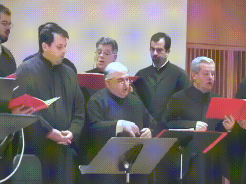 Песнопение гимна «Мария, Господь с тобой» в исполнении Греческого византийского хора под управлением Ликургоса Ангелопулоса