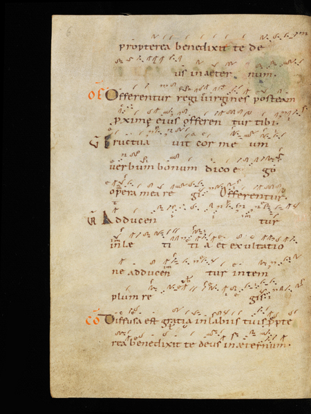 Начало фрагмента тонария из Сен-Рикье (раздел автентного прота) — одного из старейших каролингских тонариев, «Псалтирь Карла Великого» (VIII век)
