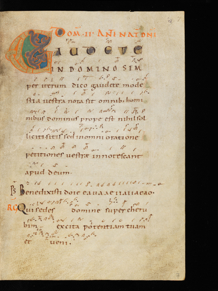 Айнзидельн, Монастырская библиотека, Кодекс 121 (1151), стр. 007. Градуал — Последования Ноткера. Написан в Айнзидельне (примерно в 960-970 годах), предположительно, для третьего аббата монастыря.