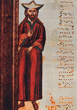 Святой Иоанн Кукузель, изображённый на музыкальной рукописи XV века из монастыря Мегисти Лавра, гора Афон, Греция | Византийская нотация (рукопись Sloane 4087, XVI–XVII вв.)