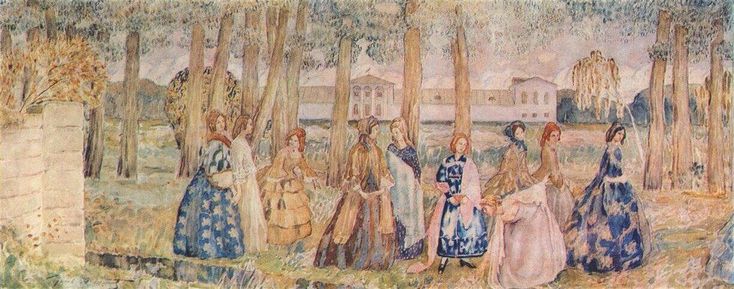 Эскизы фресок серии «Времена года» Борисова-Мусатова. 1904–1905 гг. «Осенний вечер», «Весенняя сказка», «Летняя мелодия» и «Сон Божества».