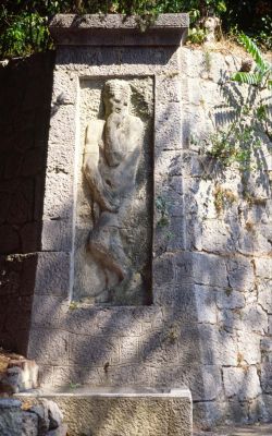 Скульптура «Спящие мальчики» 1907 года скульптора Матвеева. Барельеф «Поэт» в оформлении фонтана.