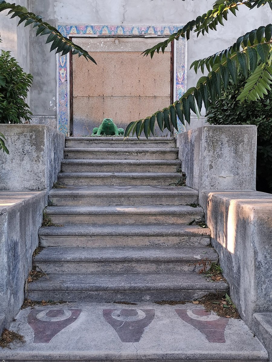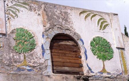 Фрагмент майолики на Южном фасаде главного дома. Южный фасад главного дома с майоликой в современное время.