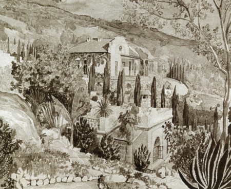 «Новый Кучук-Кой. Вид усадьбы.» 1913. «Переход с росписью П. В. Кузнецова» 1913.