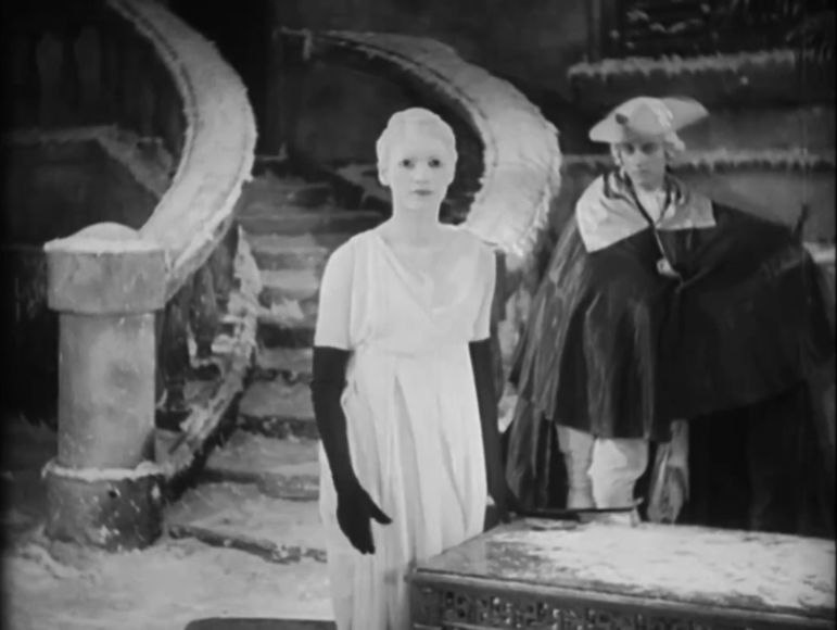 В «Двуглавом орле» же создается образ аристократической, идеализированной холодной красавицы. Эдвиж Фёйер в роли Королевы преобразует свою театральную роль в монументальный, скульптурный стиль игры, где мощь эмоции передается лишь взглядом и интонацией. Траурные, но роскошные наряды Королевы, созданные Марселем Эскофье, подчеркивают её статус и отстраненность, что контрастирует с драмой чувств, разворачивающихся на экране.