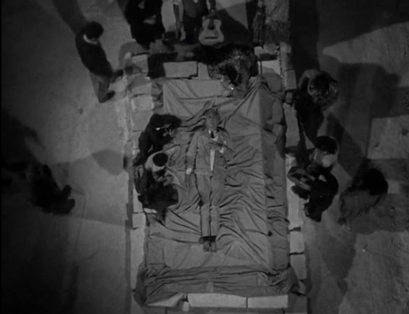 кадры из фильма «Завещание Орфея» (1960 г., реж. Кокто) композицию обоих кадров можно вписать в статичный квадрат, герои центрированы