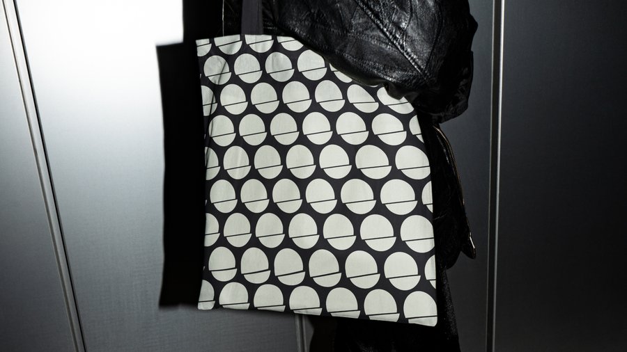 prompt: Create a realistic product image of branded tote bags (shoppers) for a kintsigi hearts project. The bags are made of natural cotton, featuring the project’s minimalist warm pattern — straight brutal lines, hearts, and abstract shapes — in rose and golden tones on a black background. Place the bags on a clean neutral surface or hanging naturally, with soft lighting. The overall mood should feel brutal, modern, elegant. Use the uploaded patterns and logo