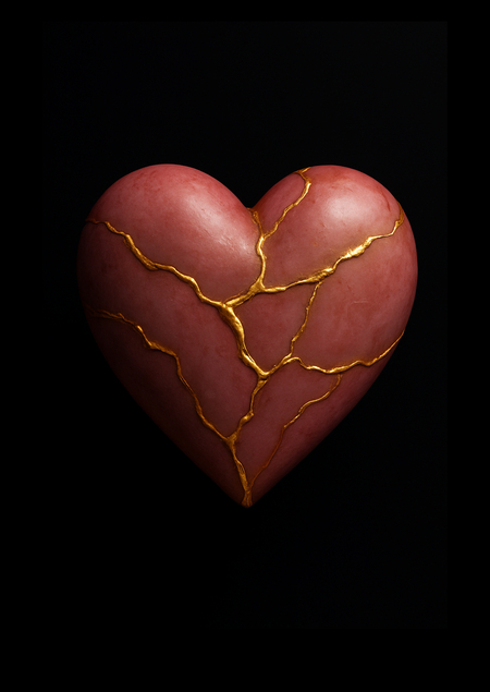 Сердца людей реставрируют по японскому принципу Кинцуги, где разбитая посуда склеивается золотом. Философская основа искусства Кинцуги заключается прежде всего в том, что поломки и трещины неотъемлемы от истории объекта и поэтому не заслуживают забвения и маскировки!