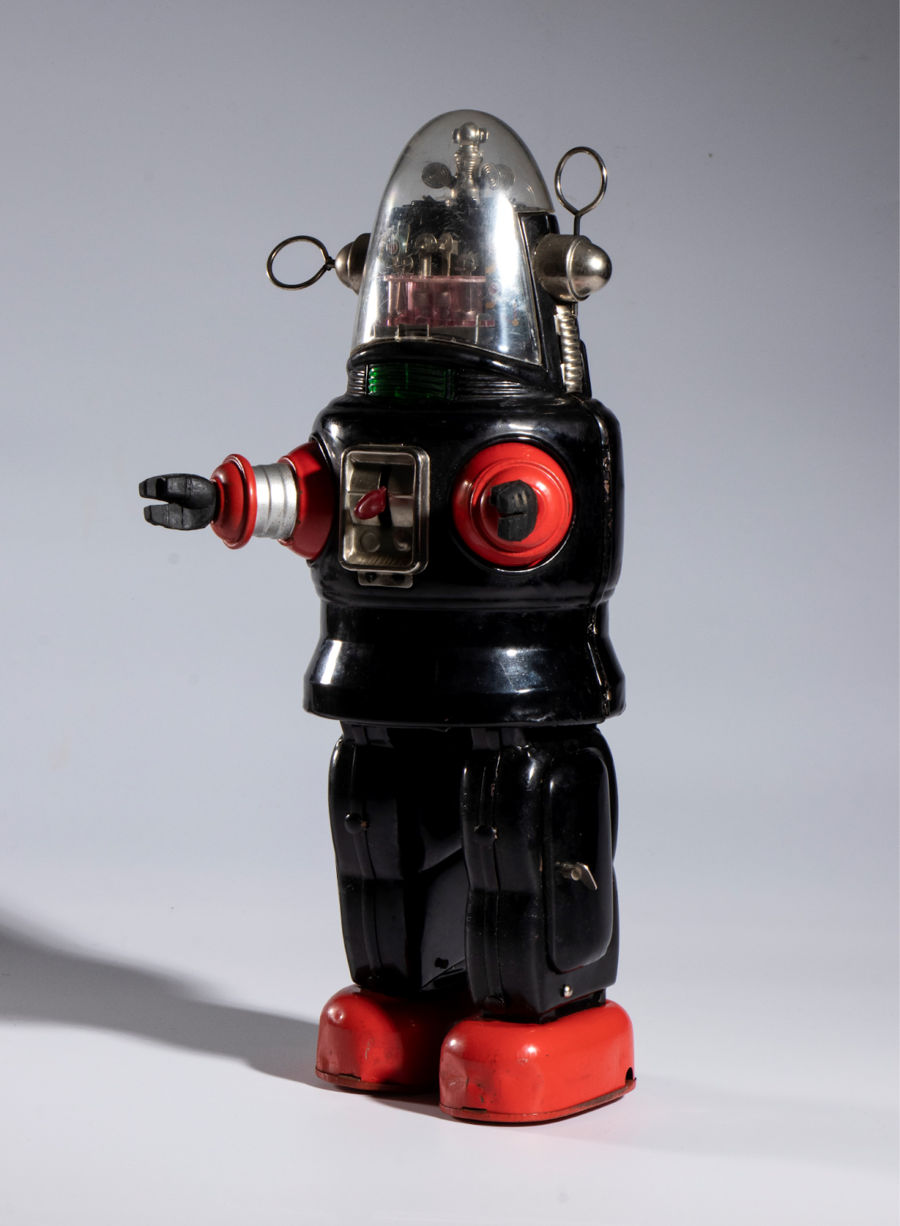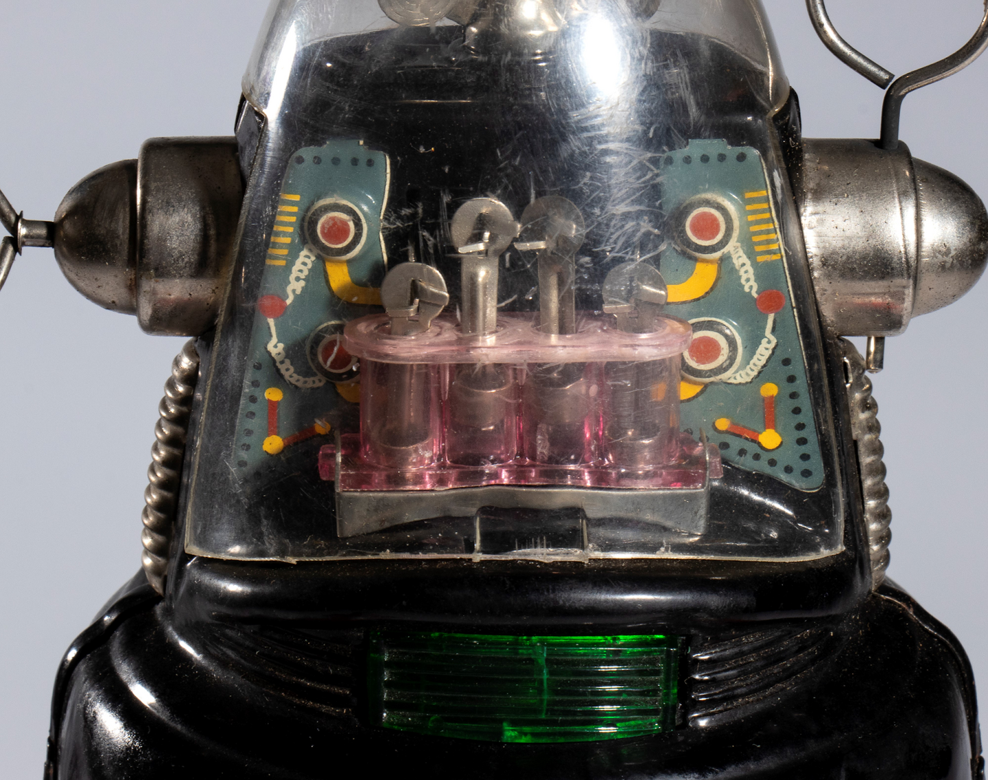 Робот называется MECHANIZED ROBOT, более известен как Робби-робот, выпущен одновременно со знаменитым фильмом 1956 года «ЗАПРЕТНАЯ ПЛАНЕТА» с Лесли Нильсеном в главной роли. Из-за отсутствия авторских прав японская компания была вынуждена изменить название.