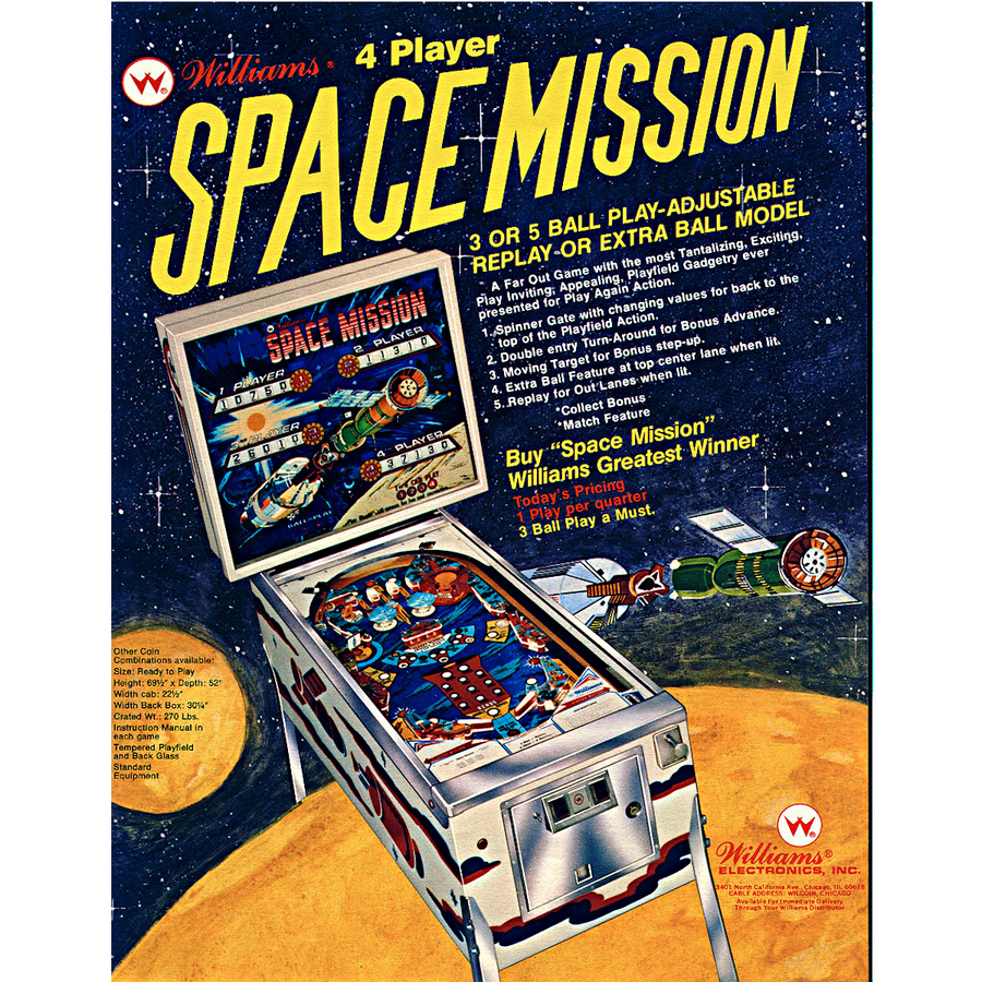 Игровой автомат Space Mission производился компанией Williams с середины 1960-х годов и был снят с производства в 1976 году. Корпус автомата выполнен из дерева, а заднее стекло представляет собой репродукцию картины Роберта МакКолла «Рукопожатие в космосе», созданной художником НАSА.