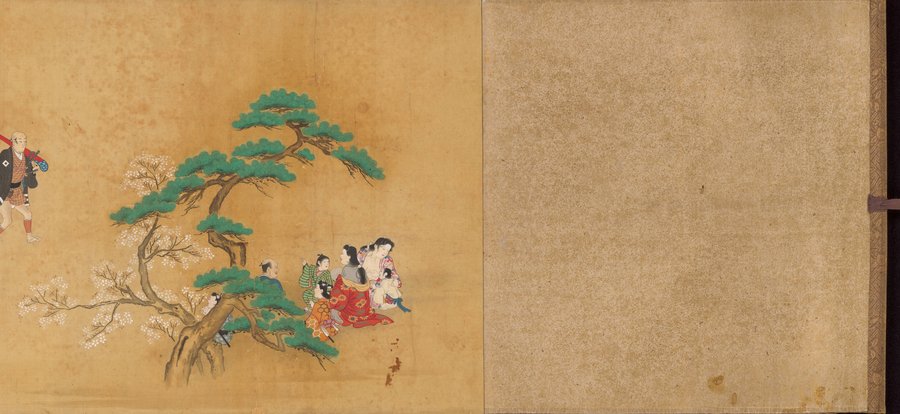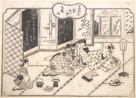 Хисикава Моронобу Влюбленные, обнимающиеся около ширмы 1680 Приглашение но гору Такао на любование кленами 1690