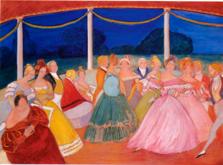 Две казалось бы совершенно разные работы по восприятию и настроению. Томные ученицы в пансионате и беззаботные дети вокруг елки, но если приглядеться: темные фигуры учитель, вокруг которых белые-невинные дамы.