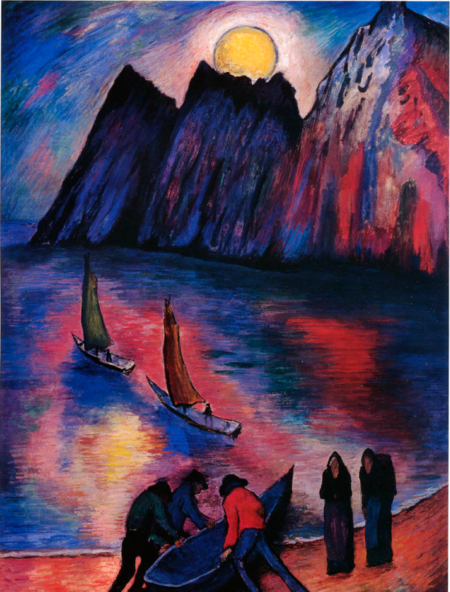 Борьба с водной стихией, движение, взаимодействие человека с природой — мотивы, появляющиеся на картинах Марианны Веревкиной в Асконе.