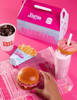 Коллаборация Burger King (розовый бургер в Бразилии), Cold Stone Creamery (мороженое) и Barbie