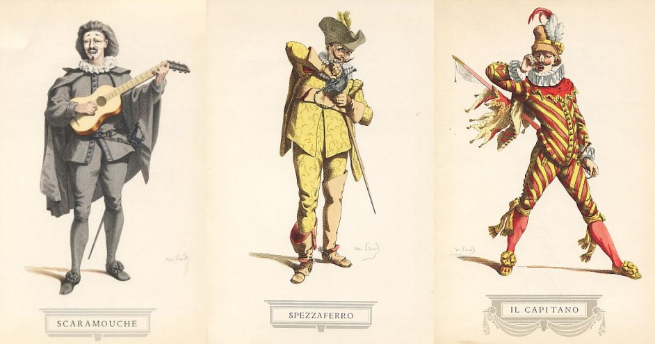 Именно это радикально отличает ренессансный театр от античного. В греческой трагедии актёр был носителем фиксированного текста и не имел права отклоняться от мифа; его маска полностью скрывала лицо, подчёркивая, что на сцене присутствует не человек, а архетип. В commedia dell’arte «маска» и «персонаж» используются взаимозаменяемо: мотивация, история и даже физика персонажа воплощены в маске».