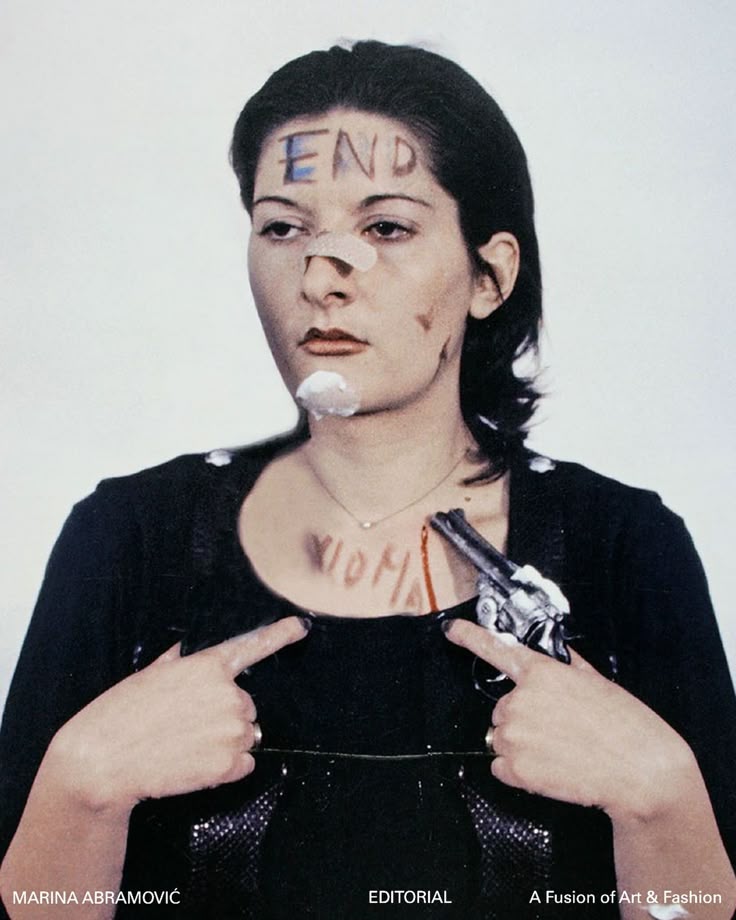 В работах Марины Абрамович маска перестаёт быть предметом и становится формой присутствия, в которую художница вводит своё тело. Её перформансы показывают, что маска — это не скрытие лица, а превращение человека в символ. Через маску-состояние Абрамович исследует уязвимость, контроль, присутствие и власть зрителя над художником.