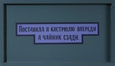 Серия «Комната № 22» у Пивоварова представляет собой концептуальный альбом, в котором рисунки соседствуют с надписями. Каждую сцену повседневной жизни (вкручивание лампочки, чай у окна, злобная морда в платке и т. п.) сопровождает подпись–фраза. Часть листов в альбоме ее содержит ничего, кроме текста, именно их я и рассматриваю в исследовании.